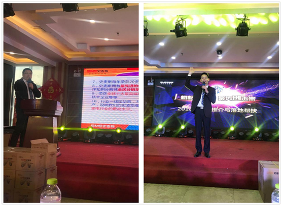 随后,为印证程总所言均属实,史麦斯领导代表胡忠胜先生上台针对2018年史麦斯电器的整体规划做了大致的介绍,而史麦斯两大事业部负责人则为临沂家人们一一分享厨电及净水事业部的发展规划。
