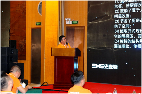 史麦斯营销中心莫总首先上台为本次大会做开幕致辞,并为现场所有经销商家人们解析了当下厨卫电器市场行业走向趋势以及史麦斯电器面对市场消费升级所要做出的改变。