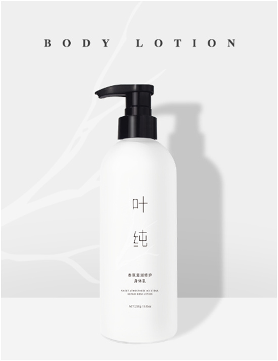 叶纯香氛身体乳,白色的椭圆形瓶子,不做无意义的色彩,不添加无意义的成分,不妥协,不迎合,无添加,将纯净护肤坚持到底。让每一滴护肤品、每一分活性物都能发挥它应有的作用,让消费者的每一分钱都能够物超所值,这就是叶纯所做的。品牌坚持以天然纯净之物润泽肌肤与秀发,以自然能量平衡自我,给予每一个热爱生活的您带来身心的深度滋养和能量的提升。