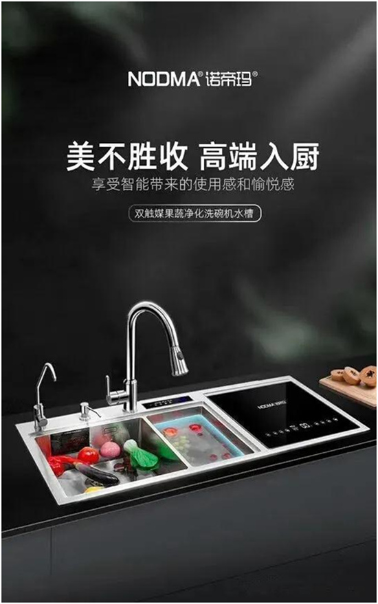 作为老牌厨卫品牌,诺帝玛厨卫深入了解消费者的需求,针对用户的痛点全新推出双触媒果蔬智能净化水槽,打造新时期安全、智能、时尚的厨房生活。