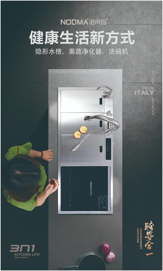 诺帝玛厨卫通过设计,融合生活智慧与生活理念,把水槽与厨房净洗功能二合为一,用超强的科技力量全力打造厨房智能净洗系统,全力推动中国厨卫行业的发展。