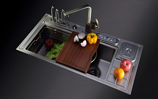 1. 智能感应技术:通过红外线或手势识别技术,智能水槽能够自动感应用户的接近并开启水龙头,无需触碰,既卫生又便捷。这一技术的应用,极大地提升了厨房操作的流畅度与舒适度。