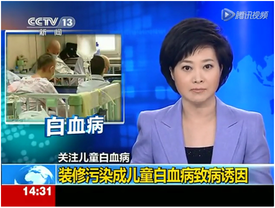 【CCTV-13 新闻】关注儿童白血病-装修污染成儿童白血病致病诱因