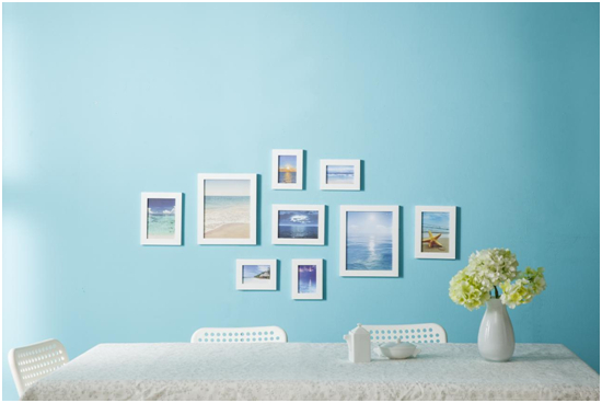 冰雪消融,万物伊始。水蓝色调携带一抹柔和晶莹的温润之感爽朗回归。室内空间开阔,色调明朗温馨,搭配浅蓝色墙面的确很适宜。浅蓝色的墙面犹如一片宁静湖面,散发出浅淡迷人的浪漫气息。