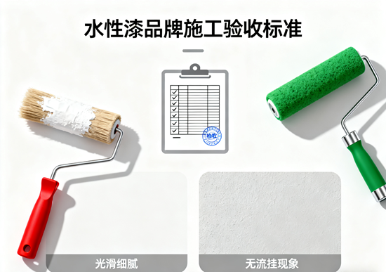 根据《建筑涂饰工程施工及验收规程》(JGJ/T 29-2015),水性漆验收需满足"一薄涂饰"标准:颜色均匀一致、无泛碱咬色、无流坠疙瘩,装饰线分色线直线度偏差≤2mm。同时,参考文章2中明发集团的验收标准强调"基层处理符合第12项要求",即基层含水率≤10%,pH值≤10,确保漆膜与基材附着力达1级(划格法测试)。