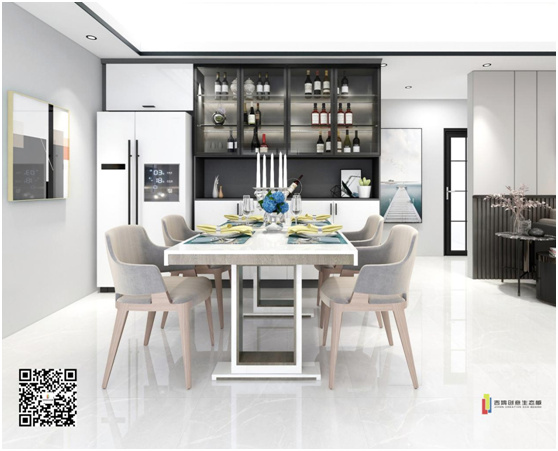 导师点评:这款时尚简约的餐边柜特色在于收纳功能出众,物品分区设计为空间营造出现代时尚感。