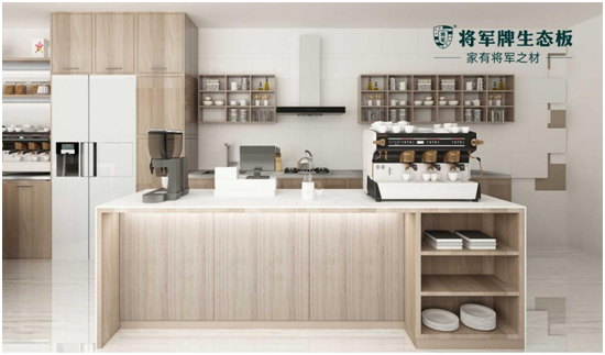 将军生态板采用的是原生态优质木材,再经过冷压、热压、砂光等几十道工序制作而成,保证每一张生态板均是平整度好、稳定性强。整张板材在制作过程中需经过数十道水分烘干工序,让板芯和浸渍胶膜纸粘合稳固,做到对潮湿环境耐受力好、不易变形的效果,即使用于定制厨房、卫生间的柜子,用户也无需担心潮湿变形等问题。