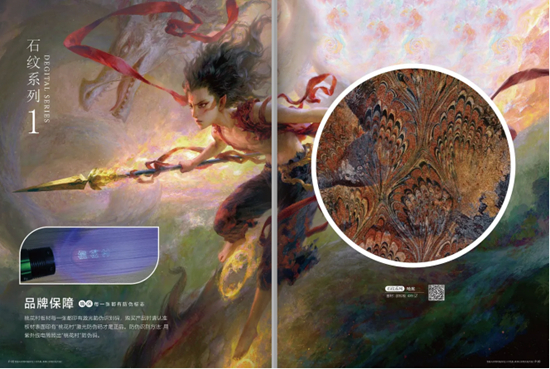 “石纹”系列的灵感源自哪吒中的经典色彩元素,通过大胆的色彩搭配与细腻的纹理设计,打破了传统东方美学中“含蓄”、“淡雅”的刻板印象。桃花村生态板以极具冲击力的视觉语言,重新诠释了东方美学的内涵,既保留了传统文化的精髓,又赋予了现代设计的张力。