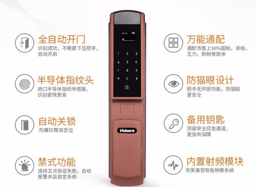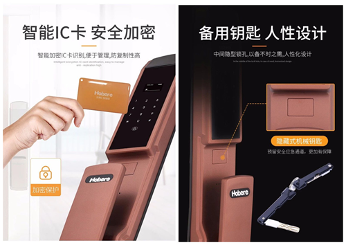 (3)刷卡开锁:Hobere-H5为用户提供创新研发的智能加密IC卡,其防复制性能好,安全系数高。