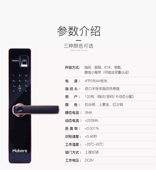 Hobere-C8拥有指纹、密码、钥匙、刷卡、手机五大开锁功能,让消费者随心开锁,让小偷望锁却步。