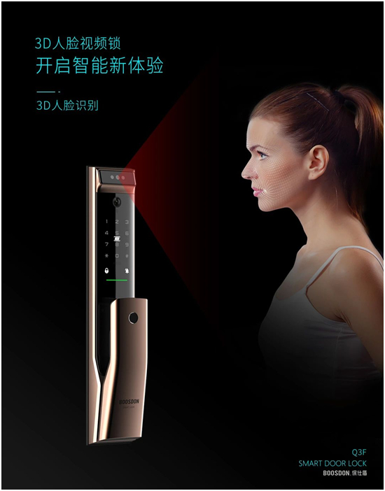 以保仕盾Q3F人脸视频锁为例,内置三维立体视觉算法,可实时辨别面部动态三维特征,有效避免2D平面成像技术造成的安全隐患;化妆、佩戴眼镜或帽子对身份验证的影响,也会降到最低。