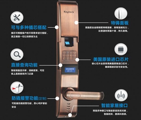 首先,门锁开启更安全。机械锁需要用钥匙开门,因此,插入钥匙孔的开启部分是必须外露的,这也就让窃贼有了可趁之机。而不同于机械锁,指纹锁需要用指纹或者密码开启大门,他的采集部分在门外,而中控部分在里面,因此不用担心会遭到小偷的恶意破坏。