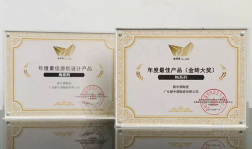 在金砖奖颁奖盛典上,新中源陶瓷“绚”系列产品凭借突破性设计创新,赢得本次“金砖奖”全场唯一至尊荣誉——“年度最佳产品金砖大奖“和”年度最佳原创设计产品”。