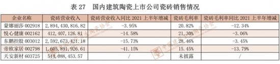 天安新材 半年报中未单独对建筑陶瓷板块进行详细披露,但指出疫情风险、房地产下行、原材料及能源成本上涨等因素均对建筑陶瓷板块造成冲击。