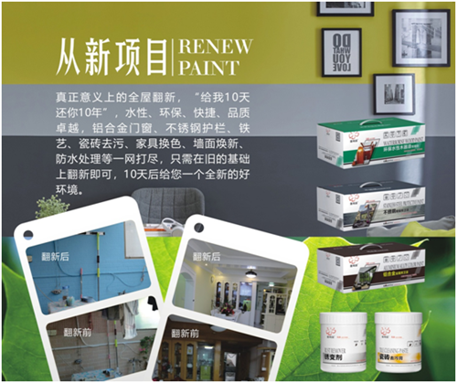 在本届展会上,数码彩还展示了从新项目全屋翻新涂装方案,涵盖墙面集成翻新、结晶防水方案、秒干家具翻新、锈铁翻新、瓷砖卫浴翻新、铝合金翻新6大体系,打破了传统的翻新市场项目零散单一的现状(绝大多数都仅提出并解决墙面翻新),市面上还未有一种翻新方案可以实现室内所有东西都能翻新。此项目曾在2017年北京·水立方“创业新生态高峰论坛暨第二届创业盛典”现场获在场嘉宾的高度认可。