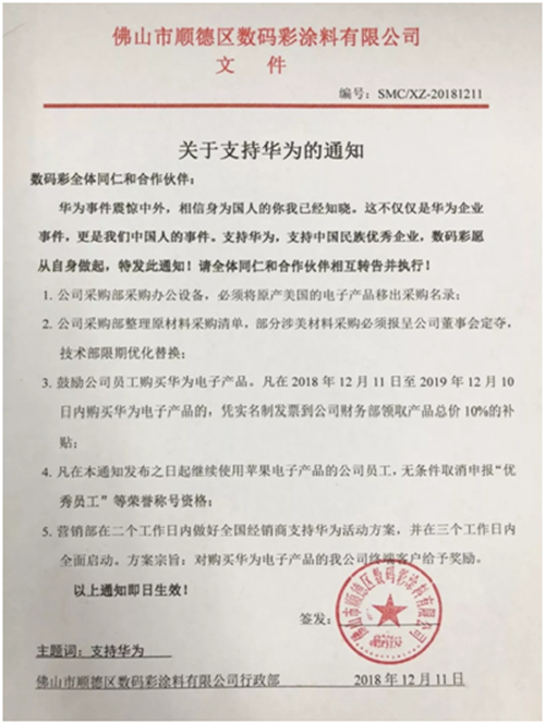数码彩涂料声援华为!支持优秀民族企业的代表