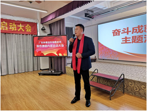 王总还强调:这次会议发布的第一批受益者只是个开始,接下来还会有第二批、第三批......,要让每一个为公司全心付出的员工都能享受到公司股权激励机制带来的好处,让大家真正成为公司的合伙人,与林德涂料携手合作,共创美好未来!
