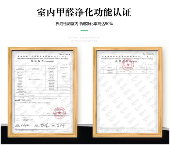 2019年,铂英特所有产品均通过了国家涂料产品质量监督检验中心的相关检测,其中公司的无机智能涂料的“室内空气净化功能涂覆材料净化性能”检测结果为“甲醛净化性能效率”达到89.2%,