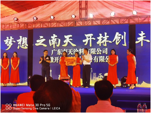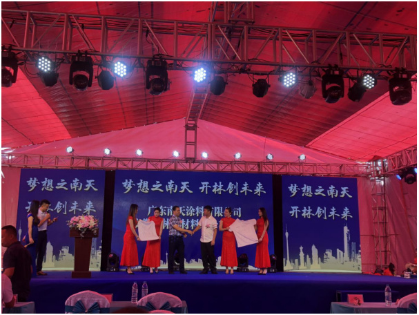 活动当天,双方企业代表亲临现场,在受邀嘉宾及媒体记者的共同见证下,开林新材料股份有限公司王总和广东南天涂料有限公司祝总互换签名T恤并合影留念,此举拉开了南天涂料与开林新材料双方深度合作的序幕,同时也标志着南天涂料华东区生产基地正式启动。