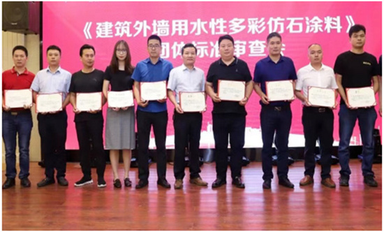 ▲广东南天涂料有限公司被授予《建筑外墙用水性多彩仿石涂料》参编单位证书