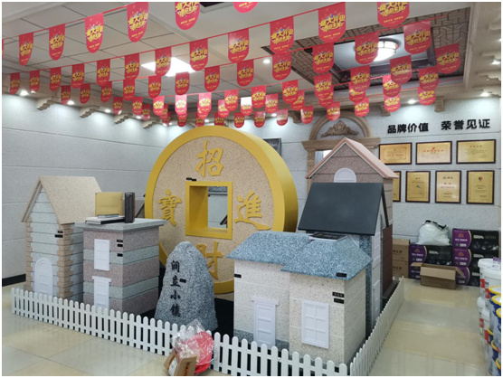 广西岑溪新店延续了润立独创的“润立小镇”经营模式,一方面大大减少经销商的库存压力和降低经营成本;另一方面通过立体化的“别墅沙盘模型”展示代替桶装涂料产品陈列,带给消费者直观强烈的涂装效果冲击力,赋予更好的选购体验。据悉,润立的沙盘模型采用了中国二十四节气命名,具有浓郁的中国风潮,而且色彩繁多以供个性化定制。