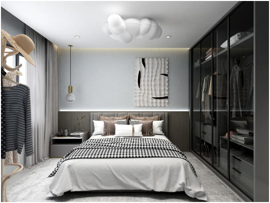 次卧设计以细节处的精雕细琢,形成了一个独具时尚魅力的现代艺术空间。