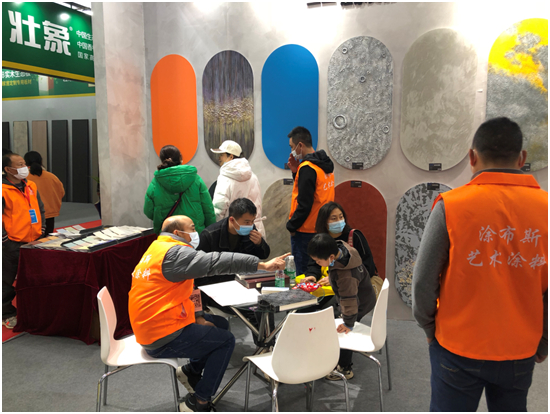 现场气氛活跃,人流如织。作为高端艺术涂料的代表性品牌,涂布斯以丰富的产品质感纹理、多样的叠色效果、细腻的墙面质感、成熟的服务配套、精准的招商扶持,增强了意向经销商的合作信心。