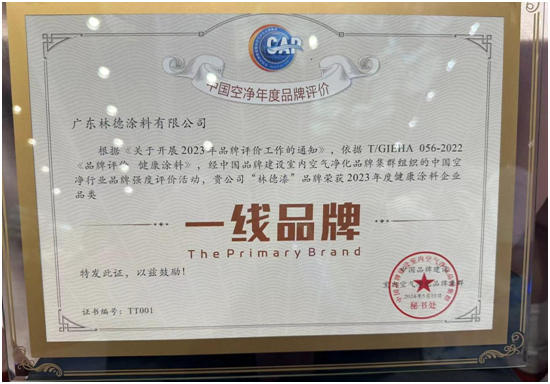 在2024年6月19日盛大召开的“美好生活·健康家”第二届健康人居公益发展大会暨广东省室内环境卫生行业协会成立15周年庆典上,林德漆凭借其卓越的技术创新和品牌影响力,荣获2023年度健康家居系列“一线品牌”称号。这一荣誉不仅是对林德漆多年来在涂料领域卓越贡献的肯定,更彰显了其在健康涂料行业的领军地位。