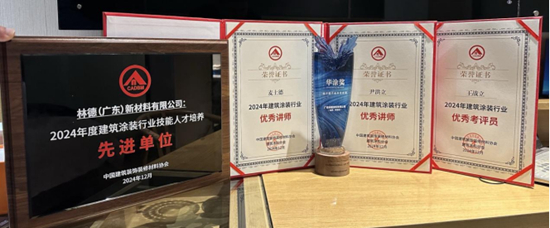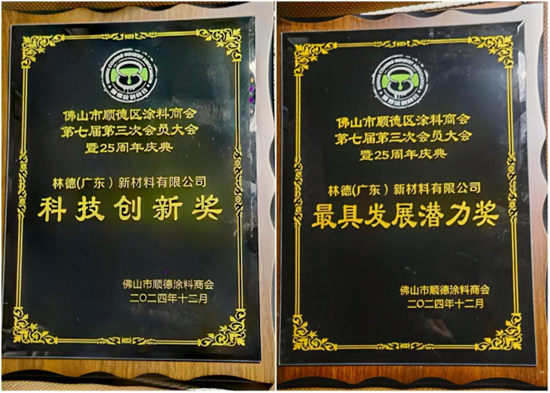12月18—19日,林德漆在顺德与北京两地的行业盛会上再次大放异彩。在顺德涂料商会25周年盛典上,林德漆荣获“科技创新奖”与“最具发展潜力奖”。在中国建筑装饰装修材料协会五届五次会员代表大会暨五届理事会第五次会议上,林德漆又斩获“2024年度建筑涂装行业技能人才培养先进单位”、“华涂奖——仿石漆卓越品质金奖”两项殊荣,同时多位公司高层也荣获个人荣誉。这些成就充分体现了林德漆在人才培养、技术创新及产品质量等多个方面取得的显著成果和竞争优势。