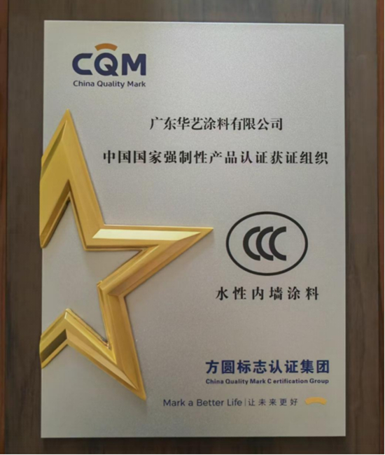 华艺涂料斩获“水性内墙涂料3C认证”,再添国家级质量背书