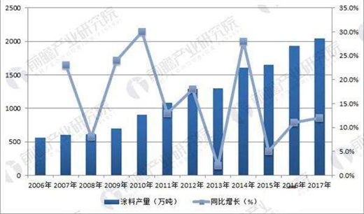 2017年我国涂料产量首次突破2000万吨