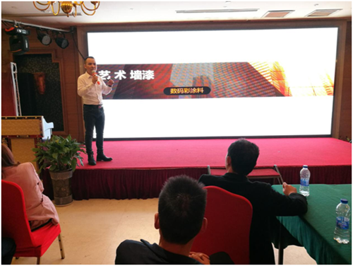 此外,北区大区经理徐华先生以及辅材部经理黄勇灿先生分别针对防水材料以及辅材系列产品进行了一系列讲解及分享。作为一家产品全面覆盖家装涂料的实力研发生产企业,数码彩展现了其独具魅力的一面。未来的数码彩,将会继续以创新研发为发展方向,为市场、消费者带来更多绿色环保、个性化涂料产品。