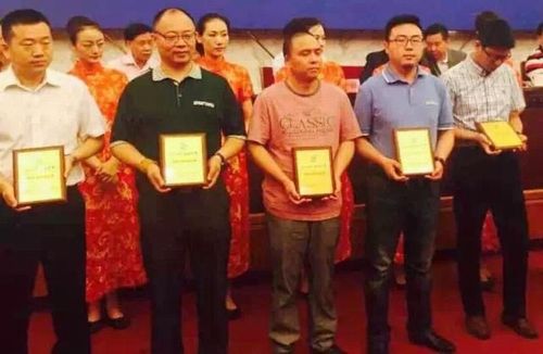 经典漆市场部经理汤孝波作为公司代表上台领奖(右二)。