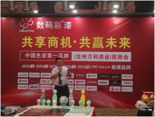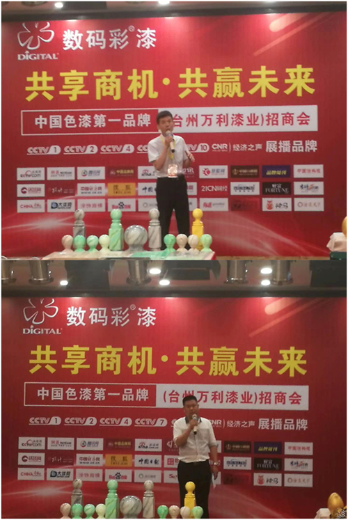 随后,台州区域数码彩总经销商、万利漆业总经理阮总更是怀着无比激动的心情上台做欢迎致辞,并感激各位家人能在百忙中抽空前来参与本次大会。