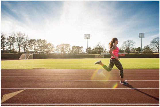 其中的复合型跑道它采用国际田联认可的复合结构,上层为 PU 颗粒或EPDM耐候性环保彩色颗粒,渗水的聚氨酯密封,下层采用机械施工缓冲底垫。复合型跑道具有弹性好、色泽鲜艳、强度高、耐磨、防滑能等诸多优点,能够保护运动员的脚踝,防止跌倒所发生的运动伤害,减少体力的消耗,增进竞赛成绩。