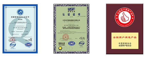 光芒以“务实、求精、学习、创新”的企业精神和“我们的服务一定做到家”的服务理念,赢得了社会的认可和消费者的青睐,集团及旗下企业先后通过了ISO9001国际质量体系认证、ISO14000国际环境管理体系认证、 “CCC”认证、“欧盟CE认证”、“德国TUV认证”、“金太阳认证”等,集团先后荣获 “江苏省文明单位”、“江苏AAA信用企业”等荣誉。
