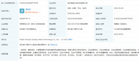 根据竹山县政府网站介绍,该项目名为木林森-银超高端智能卫浴制造项目,由福建银超卫浴投资。根据企查查数据显示,银超卫浴科技有限公司于今年6月注册成立了湖北银超卫浴科技有限公司,注册资本5000万元,法定代表人为黄银超,所属行业为科技推广和应用服务业。