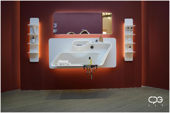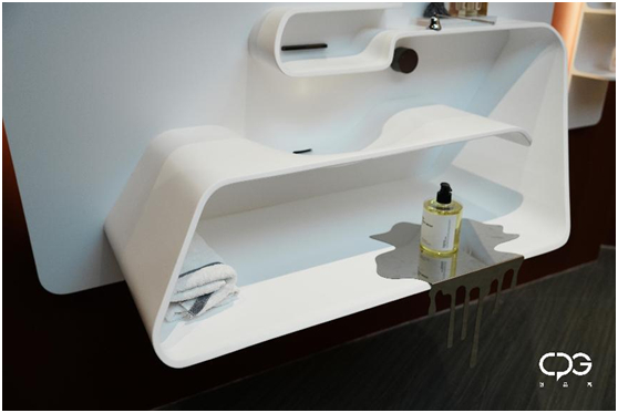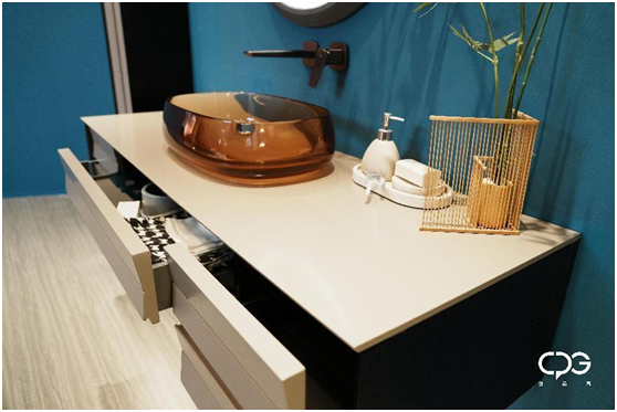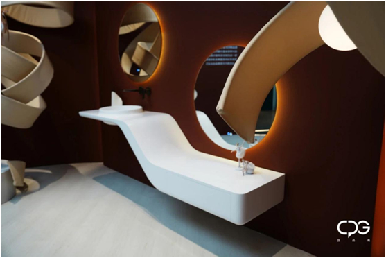 这次展示的部分新品浴室柜,更是以人造石+木材的形式来呈现CPG创品高全案卫浴的独特美学。刚硬的人造石与温润的木,两种截然不同的材质,结合多重技术和工艺,在CPG创品高全案卫浴的独特设计下,展现出协调和谐的刚与柔的交融相依,在全新的角度下,勾勒出独属于CPG创品高全案卫浴的极简美学。