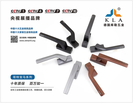 库勒五金是一家专业设计、生产高档门窗配件企业。深耕行业二十多年,其在市场经济舞台上锐意进取、开拓创新,在务实求精中践行创新、创意、创享的价值理念,收获不绝于耳的赞扬声,斩获一项项令人瞩目的荣耀。品牌“KLA”获欧盟工商总署认证,且先后荣获中国门窗配件行业中的“著名品牌”、“央视展播品牌”和“中国十大五金锁具品牌”等众多荣誉称号,用实力见证辉煌。