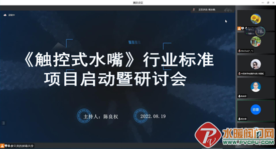 2022年8月19日全国五金制品标准化技术委员会厨卫五金分技术委员会(SAC/TC174/SC4)秘书处组织召开了《触控式水嘴》行业标准启动暨第一次工作组研讨会。本次会议通过视频会议的形式召开。