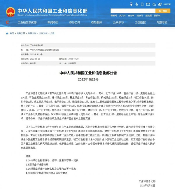 根据中华人民共和国工业和信息化部2022年第23号公告,由九牧厨卫股份有限公司等单位共同起草的QB/T 5755-2022《厨卫五金 抗油涂层评价技术要求》行业标准于2022年10月20日正式发布,并将于2023年04月01日起正式实施。
