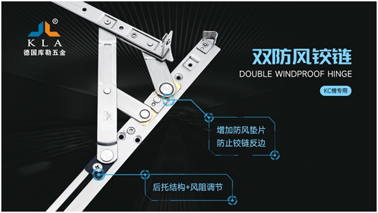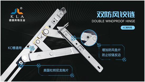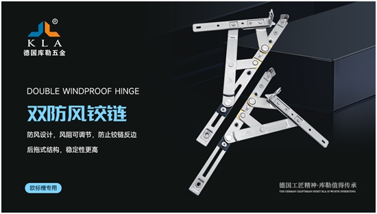 为了提高铰链的防风性,库勒五金经过88次实验室测试和3万次开启实验,隆重推出双防风铰链。此产品结构独特,不会松脱,开关过程无噪音,而且承重能力强,经久耐用。