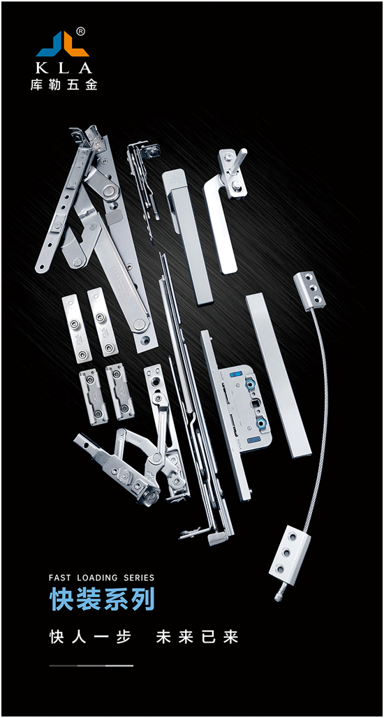 此系列是库勒五金的主打产品,涵盖执手、锁盒、滑撑、铰链、配件包,均采用高品质304材质,免打螺丝设计,安装快捷、更换方便,不伤铝材。这是最吸引门窗厂商的特点,它不仅能够节省了门窗制造过程中的组装人力成本,实现效率效益“双提升”,还能引导门窗厂商自动化生产。
