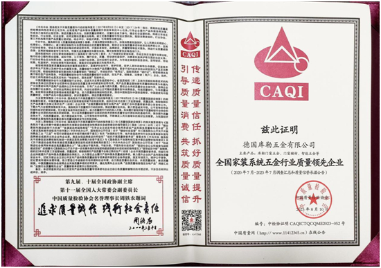 质量决定一切,有好质量,市场才认可产品;有好质量,企业才拥有诚信;有好质量;企业才能够脱颖而出!近日,我国开展“质量月”活动对广大企业进行质量评选,其中库勒五金荣膺“全国质量诚信标杆典型企业”;“全国家装系统五金行业质量领先企业”;“全国家装系统五金行业质量领先品牌”;“全国质量检验信誉保障产品”等多个荣誉。