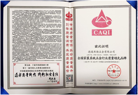 荣誉满身,既是肯定,也是审视。库勒五金即使身处行业领先地位,也不曾懈怠,而是精益求精,以一颗精工心,更加注重品质,持续发挥品质能量,为行业系统赋能,创造价值!