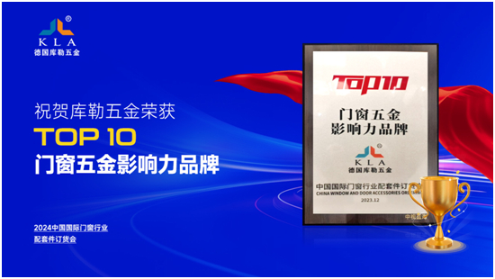 聚焦2024国际门窗配件订货会|库勒五金喜提“门窗五金TOP10”奖