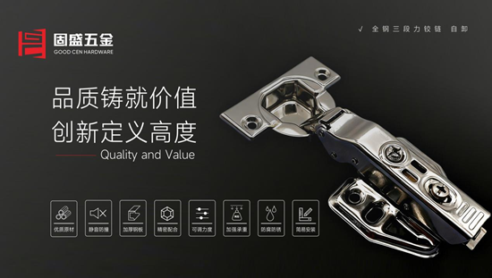 如果说品质是固盛的根基,那么创新就是固盛持续引领行业的引擎。以固盛独创的“不锈钢三段力铰链”为例,这项技术彻底解决了传统铰链的行业痛点:它不仅实现了一扣即合的便捷安装,灵活适配不同厚度门板,更在小角度开启时即可启动缓冲功能,有效防止夹手;通过多层电镀工艺提升防锈性能,结合精钢锻造与力学结构优化,历经50000次开合测试仍能稳承重门。这不仅代表着技术的重大突破,更是对家居五金用户体验的重新定义。