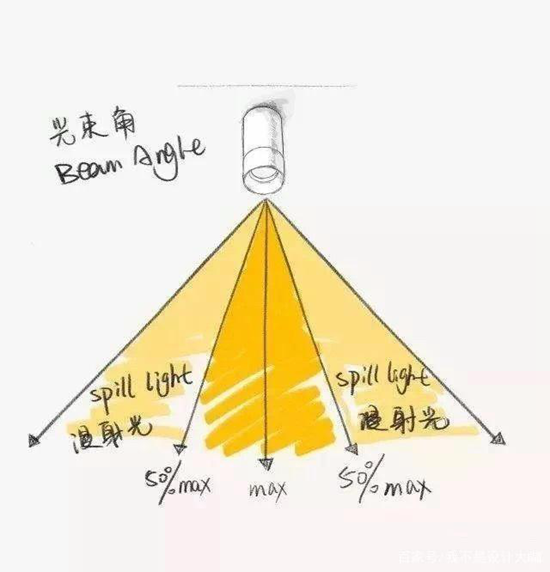 无主灯设计---光束角。光束角并不是一个真实的角度,可以简单得这样理解,光束角就是灯具出光的形状。真实的光斑会比标着的光束角大很多,24°就是适合洗墙、家用的角度一般家里射灯选择24°即可。