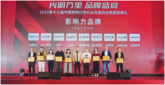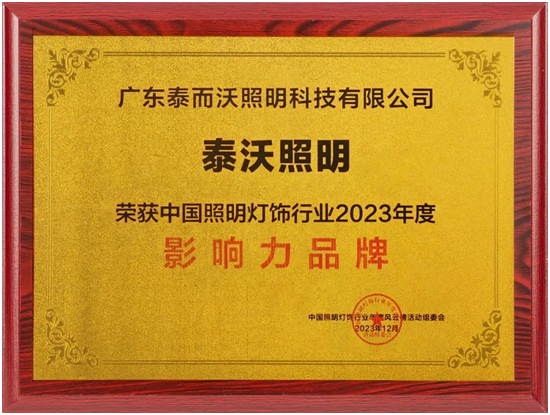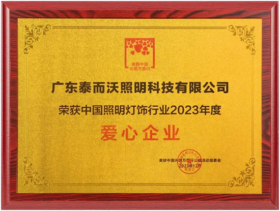 泰沃照明荣获中国照明灯饰行业2023年度影响力品牌、爱心企业