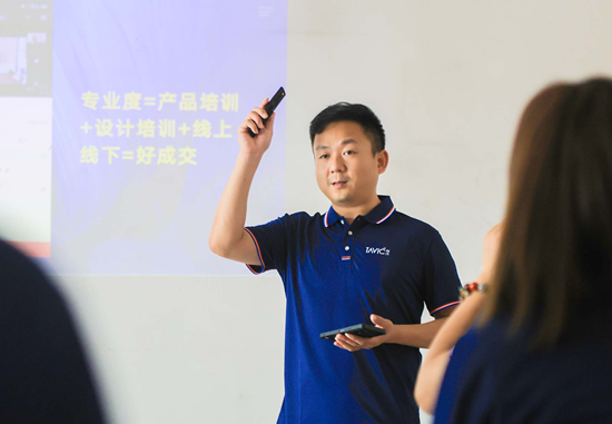 随后,泰沃照明营销总监胡宇涛为在场的经销商介绍了公司的新品及营销规划。胡总监详细阐述了新产品的设计思路、技术特性以及市场预期,也展示了泰沃照明在培训上的创新与布局,旨在帮助经销商更好地理解产品优势,提升销售效率。同时展示了未来在终端店面上的升级计划与完善措施。